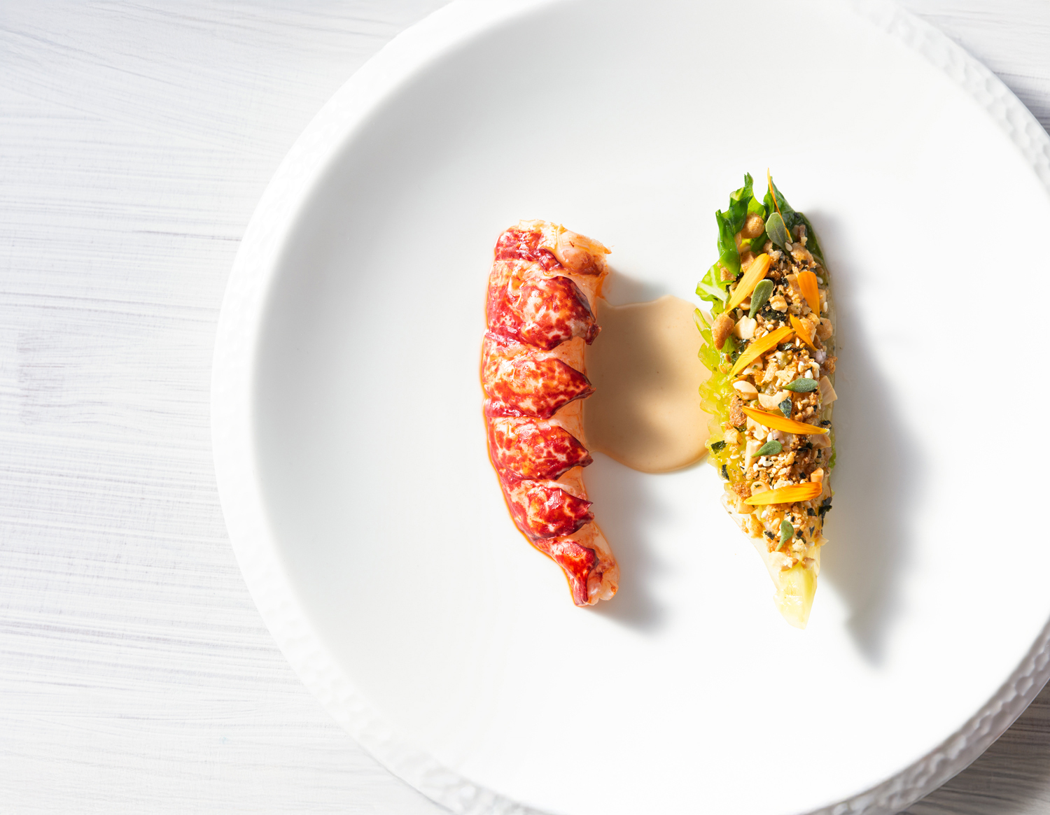Later, glazed veal sweetbread arrived rich and golden, matched with warm gribiche, gnocchi and a slick of roast bone sauce — deeply savoury, but never heavy. There was also breast of royal quail with black garlic and maitake, a study in texture and restraint. Desserts, too, showed restraint without losing impact: Manjari chocolate with Pedro Ximénez, hazelnut and a single drunken cherry brought the menu to a quietly indulgent close. The wine pairings were a triumph in themselves. The sommelier moved deftly between the familiar and the unexpected — an English sparkling, a Lebanese red, a waxy Greek assyrtiko — always with a relaxed manner and a sharp palate. For those not drinking, a mocktail of rosemary, elderflower and star anise proved both sophisticated and refreshing.